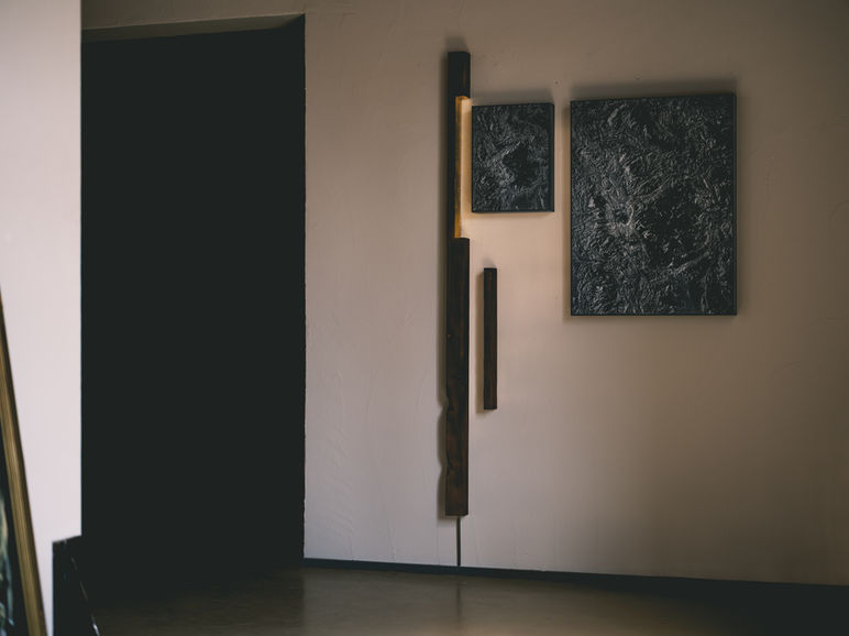 „PANTA RHEI“ zeigt zwei großformatige Schwarz-Weiß-Fotografien in Kombination mit einer minimalistischen, teils vergoldeten Holzskulptur. In ihrer stillen Dringlichkeit wirken die Arbeiten wie seismografische Aufzeichnungen eines inneren und äußeren Drucks – als würde das Sichtbare in sich zusammenfallen und in seiner Oberfläche seine Wunden zeigen.