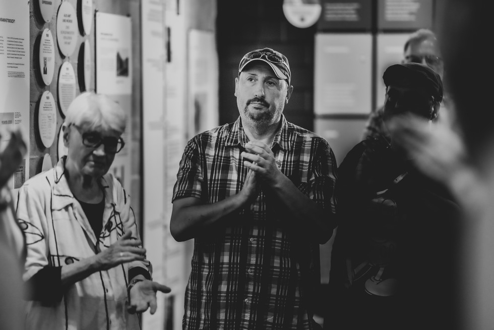 Bürgermeister Thorsten Riehle eröffnete die Führung freudig und ebenso mahnend. Klaus Schirdewahn war als Zeitzeuge ein wichtiger Bestandteil der Führung. Er erzählte aus seinem Leben und dem Leben mit dem Paragraphen 175. Diese und weitere schockierende Einzelschicksale ließen die Mimen von den vielen Interessierten immer wieder erstarren. Auch ich war tief bewegt und habe mich daher entschieden, diese Serie in Schwarz-Weiß darzustellen.